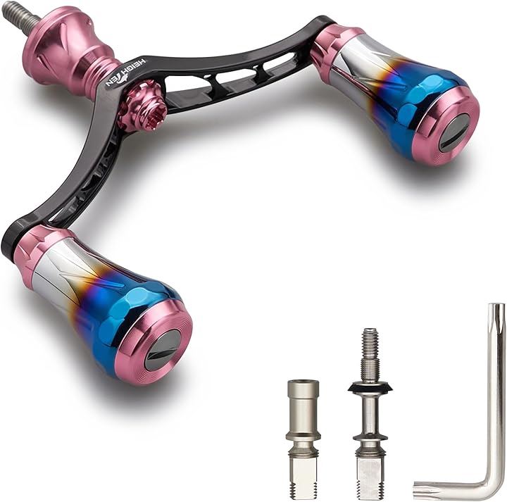 V3.0 80/98mm リール ハンドル 航空アルミ製 シマノ ダイワ 通用 スピニングリール Arch 桜ピンク(桜ピンク(ノブ)&ブラック(ハンドル), V4.0 - 80mm)